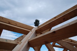 Timber Frame Fishing Lodge – View Up Completed Timber Valley Rafter